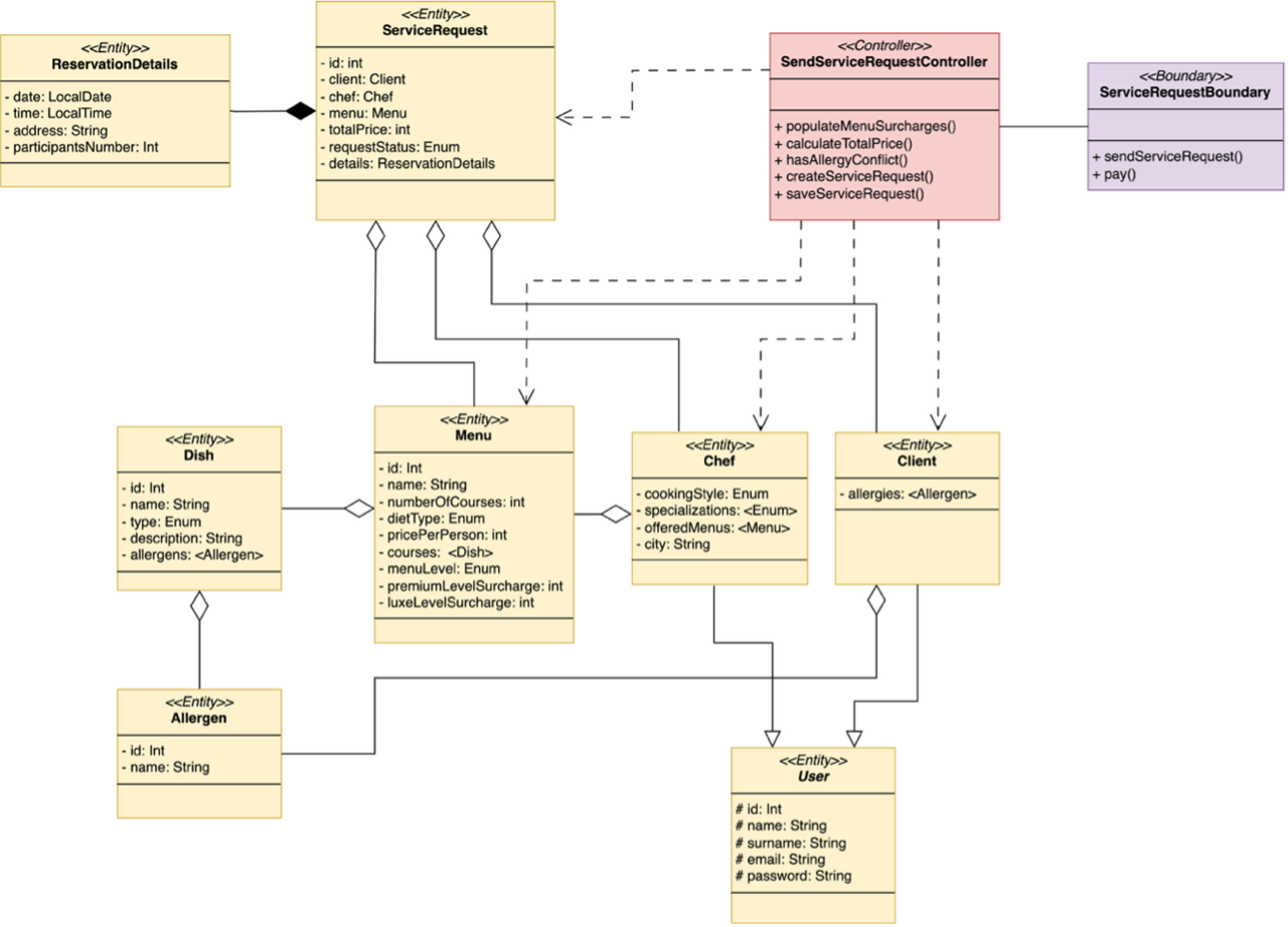 L'utente sarà in grado di selezionare lo chef tra quelli presenti in un elenco riportante tutti gli chef presenti nella città inserita. Il cliente Potrà selezionare lo chef in base al suo stile di cucina e alle specializzazioni che quest'ultimo possiede e i menu offerti. Il sistema bloccherà in automatico la prenotazione qualora qualche piatto nel menu selezionato conterrà allergeni presenti nella lista delle allergie registrate dall'utente per lui e per i suoi ospiti, assicurando così un utilizzo sicuro dell'applicazione