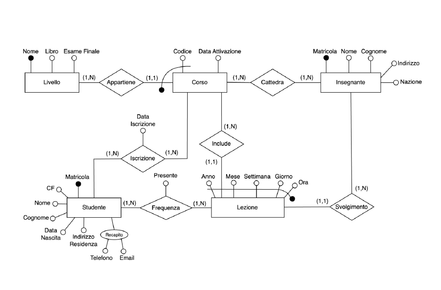 Qui si modella la realtà ignorando i software tecnici. Si individuano gli "oggetti" principali (Entità), le loro caratteristiche (Attributi) e i legami che li uniscono (Relazioni)