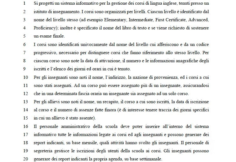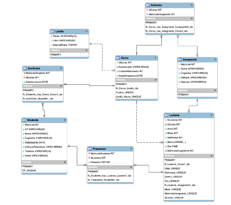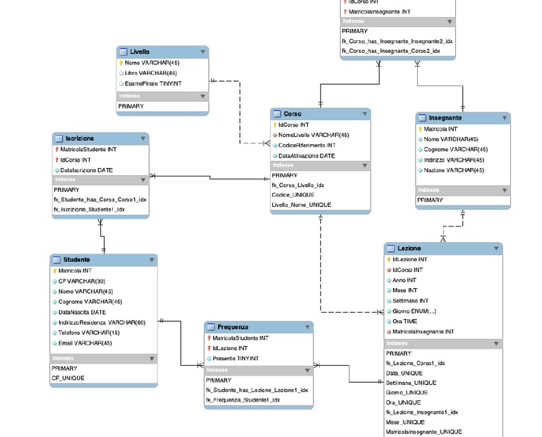 Nel progetto veniva richiesto di realizzare un sistema di gestione di un database per un istituto fittizio di corsi di lingua inglese.