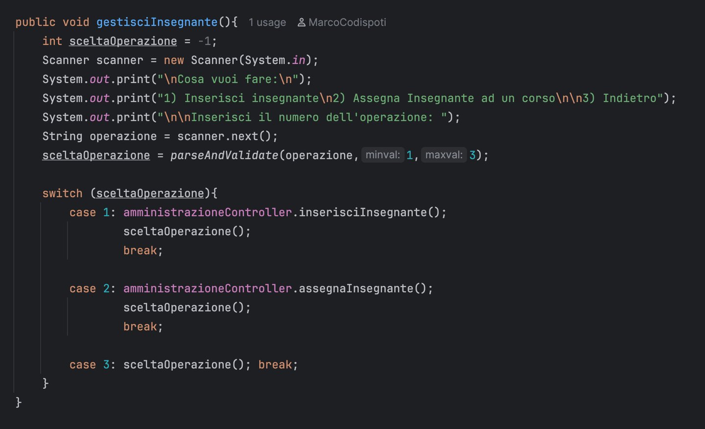 Il personale amministrativo della scuola deve poter inserire all’interno del sistema informativo tutte le informazioni legate ai corsi ed agli insegnanti e possono generare dei report indicanti, su base mensile, quali attività hanno svolto gli insegnanti.