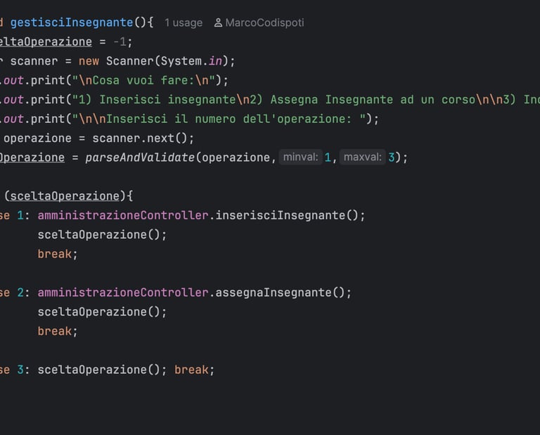Il database relazionale viene collegato, gestito e interrogato tramite un semplice applicativo Java con interfaccia a riga di comando.